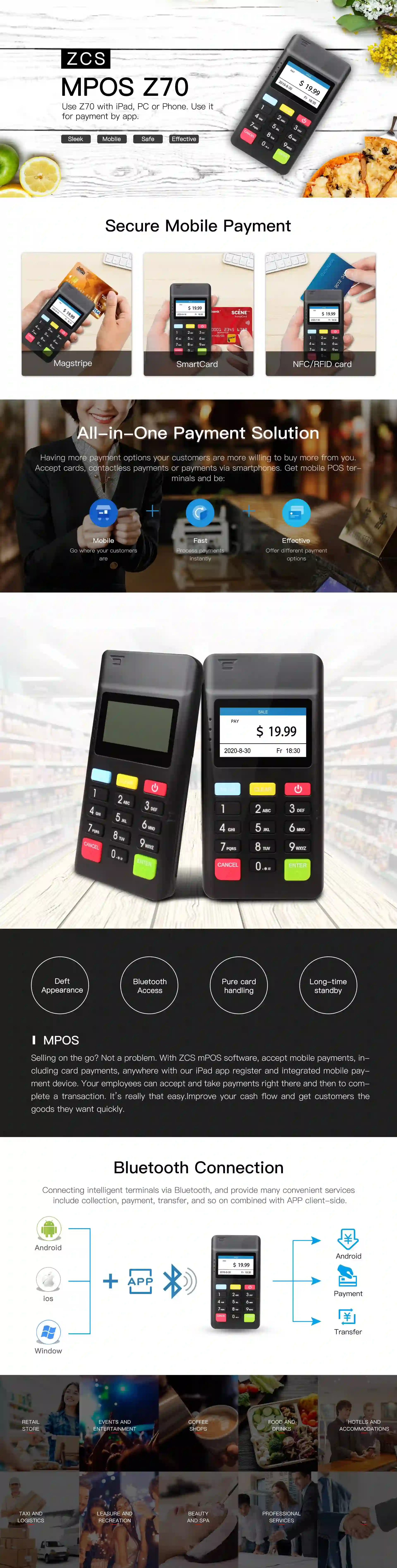 With its Type-C interface, long standby time, and ergonomic design, the ZCS Z71 MPOS is an excellent choice for merchants looking for a portable, secure, and reliable payment solution.